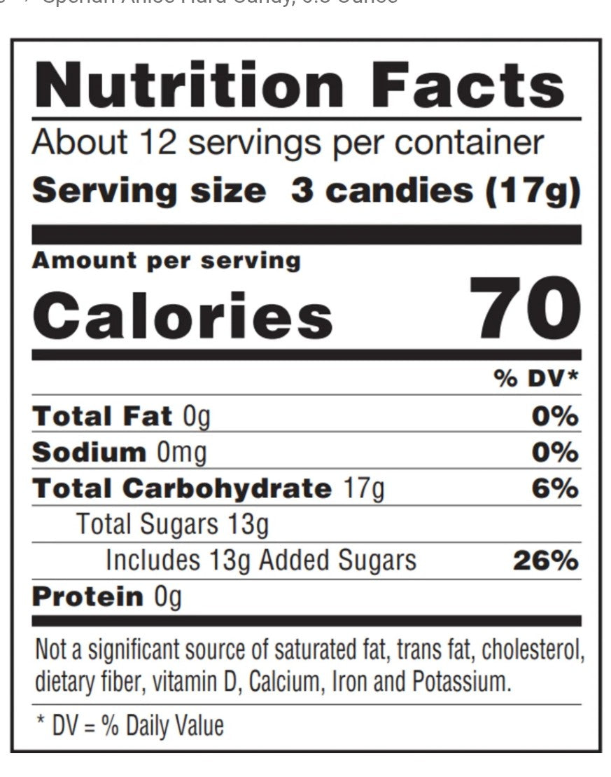 Sugar, Glucose Syrup (Wheat), Anise Natural Flavor, Potassium Acid Tartrate, Menthol. Contains Wheat. May contain Milk. *The wheat has been processed to allow this food to meet the Food and Drug Administration (FDA) requirements for gluten-free foods.